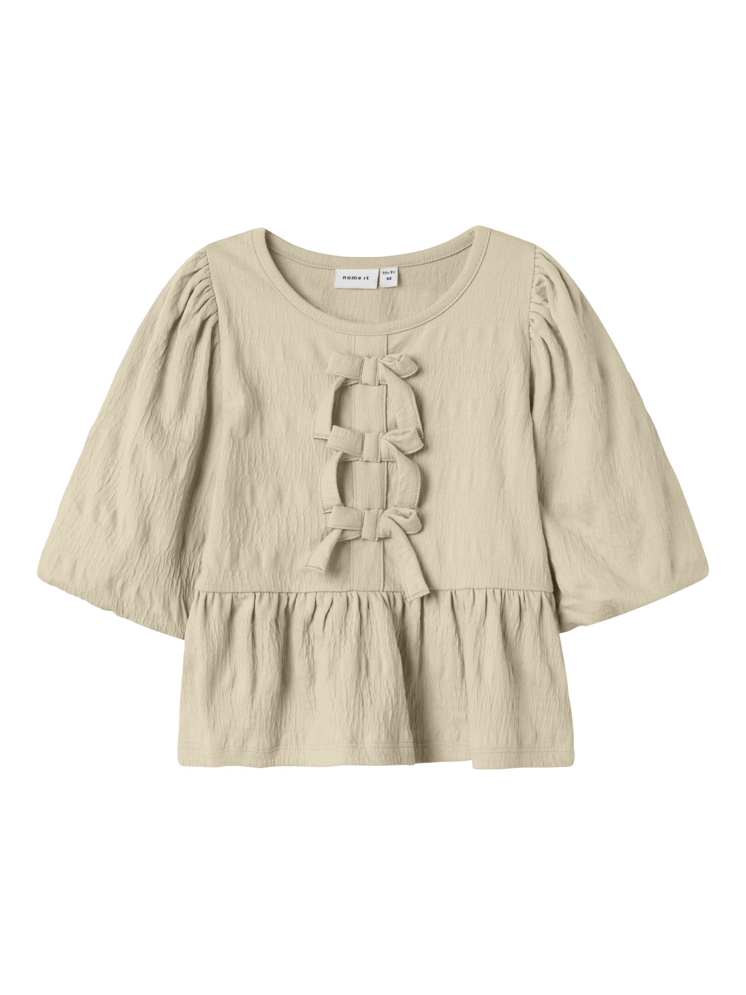 Fineste skjortebluse fra name it med sløjfer og 3/4 ærmer.