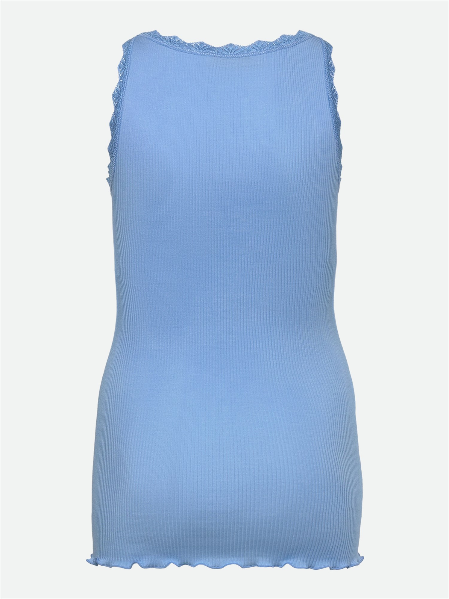 Blød blondetop til piger med klassisk blonde omkring en rund halsudskæring, krølkant forneden samt uden syninger, hvilket gør toppen meget behagelig at have på.