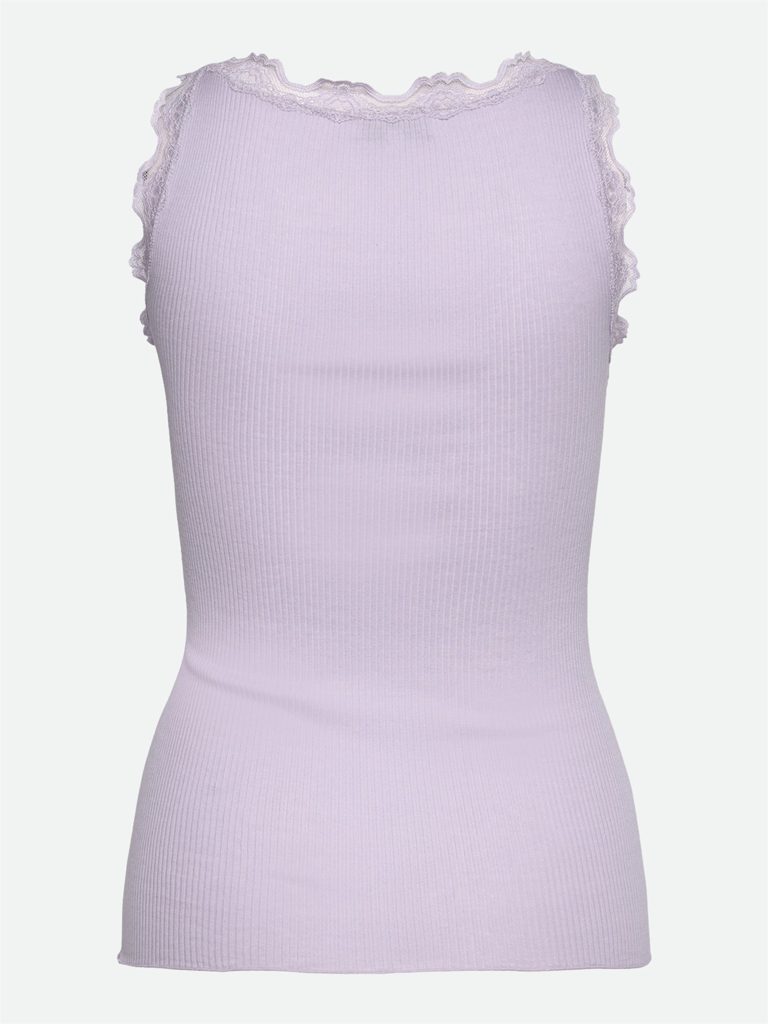 Rosemundes ikoniske silketop designet med en unik blondekant omkring den runde halsudskæring. Blondetoppen er rundstrikket til en tubetop uden sidesøm og er utrolig behagelig at have på.
