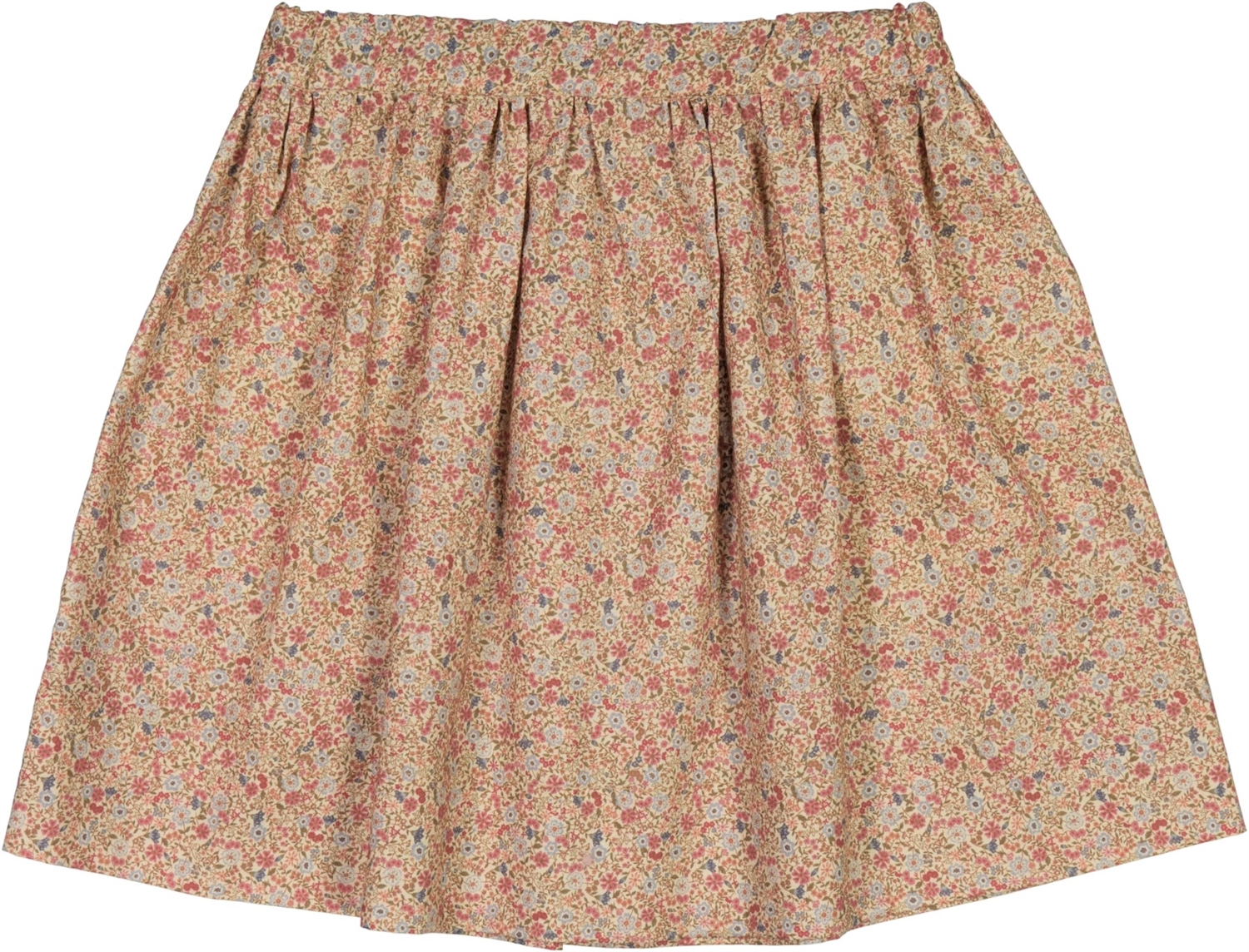 Vid nederdel i vævet bomuld i det fineste print. Nederdelen har rynkeeffekt i livet og lommer.